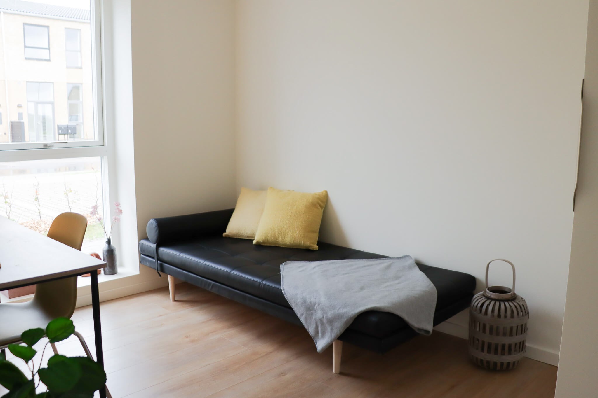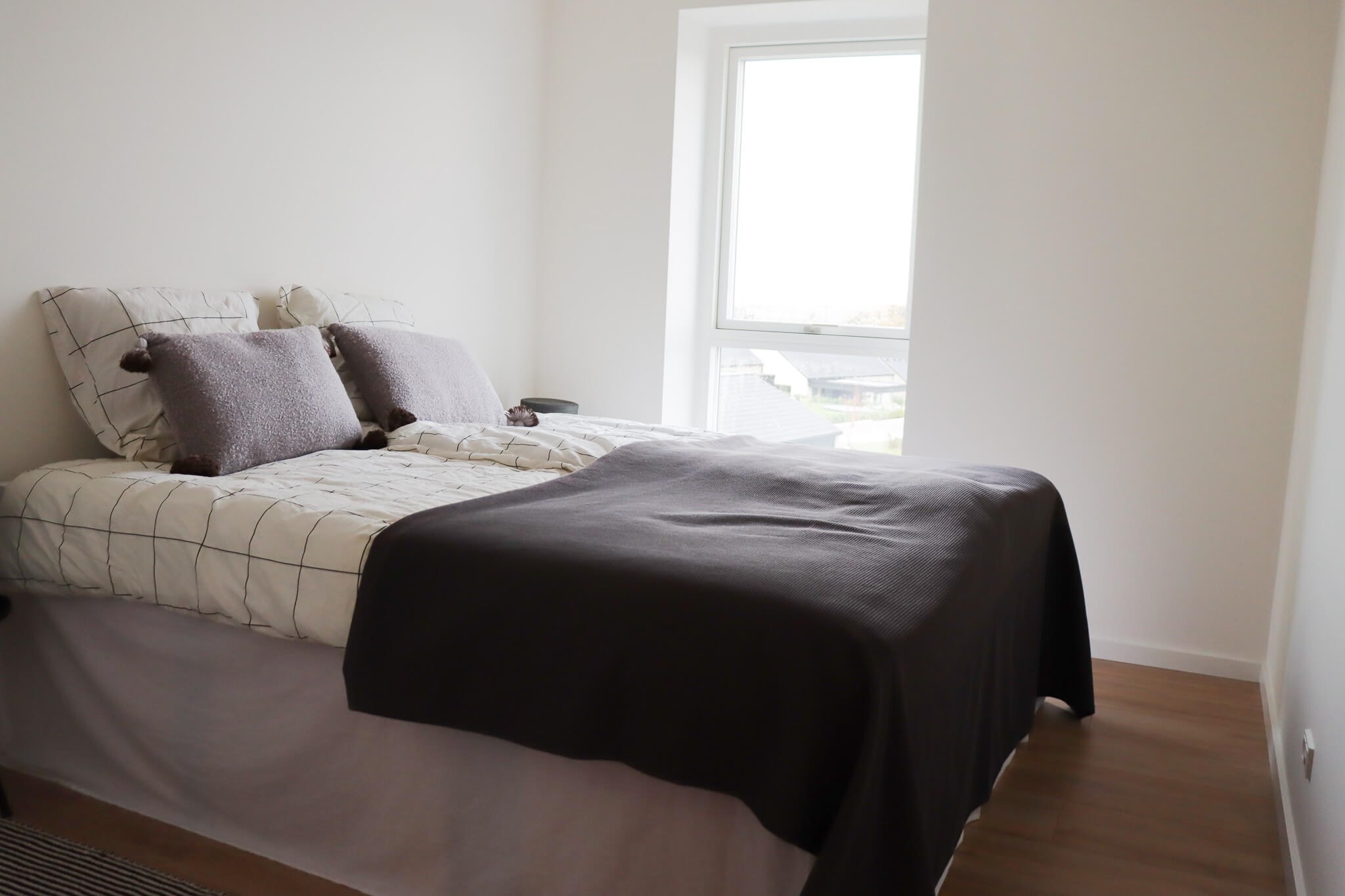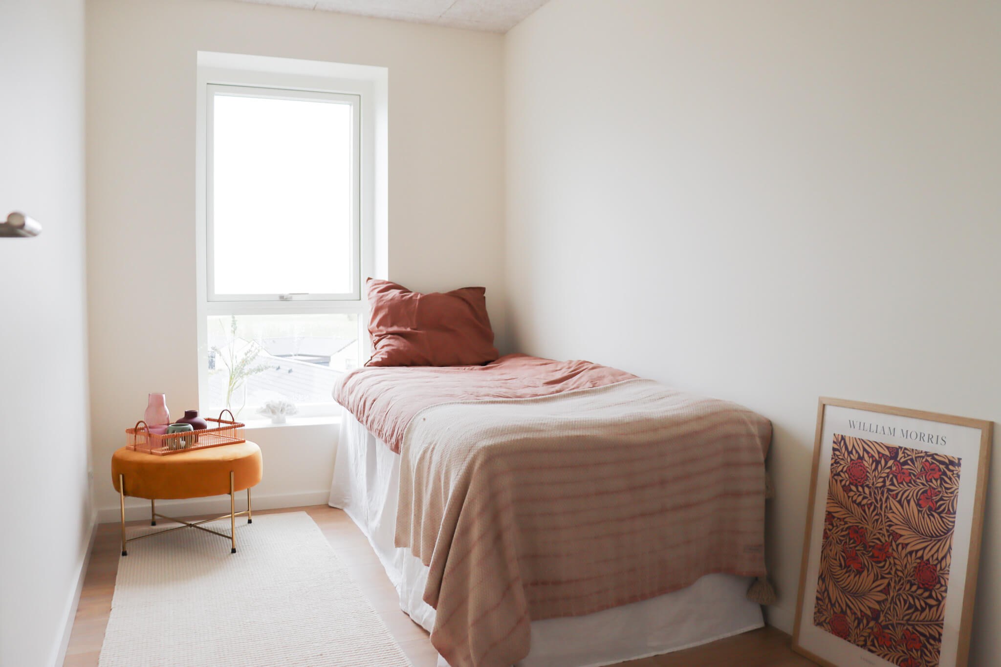 På 1. sal er boligens tre værelser placeret, herunder et soveværelse og til ekstra værelser. Hvert værelse er udstyret med opbevaringsløsninger i form af fastmonterede højskabe.