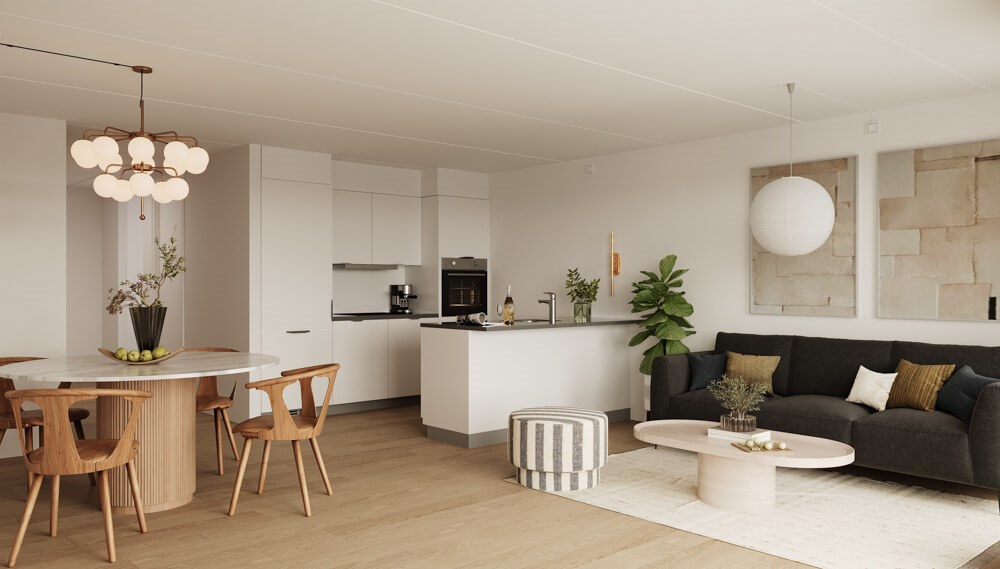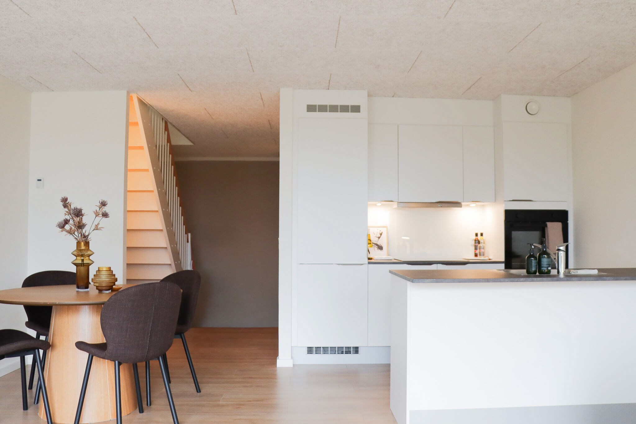 I dette skønne fireværelses rækkehus får man en optimeret inddeling mellem opholdsrum og soverum. I stueetagen er det nye køkken-alrum placeret. Med alt i hårde hvidevarer og en dejlig køkkenø, er der mulighed for at udfolde sine gastronomiske evner og skabe gode oplevelser. Køkkenet fra HTH ligger i forlængelse af spise- og stueområdet. Herfra er der gennem et stort vindues- og dørparti adgang ud til boligens hyggelige terrasse.