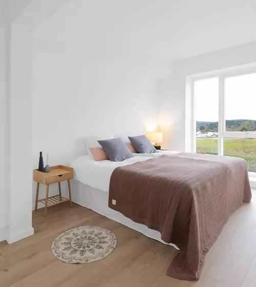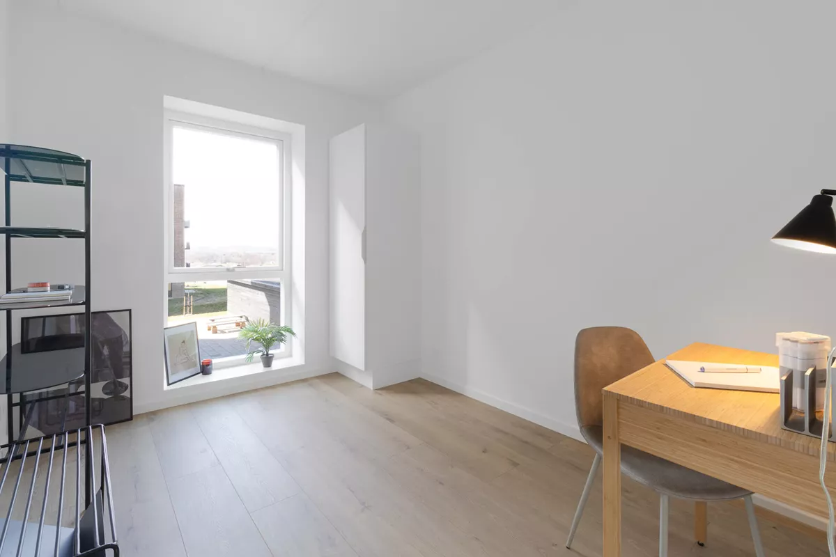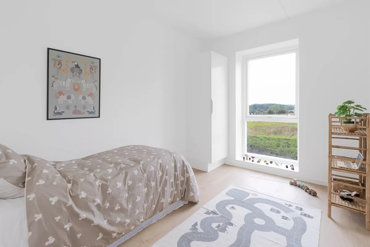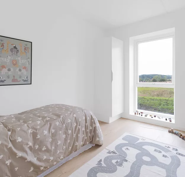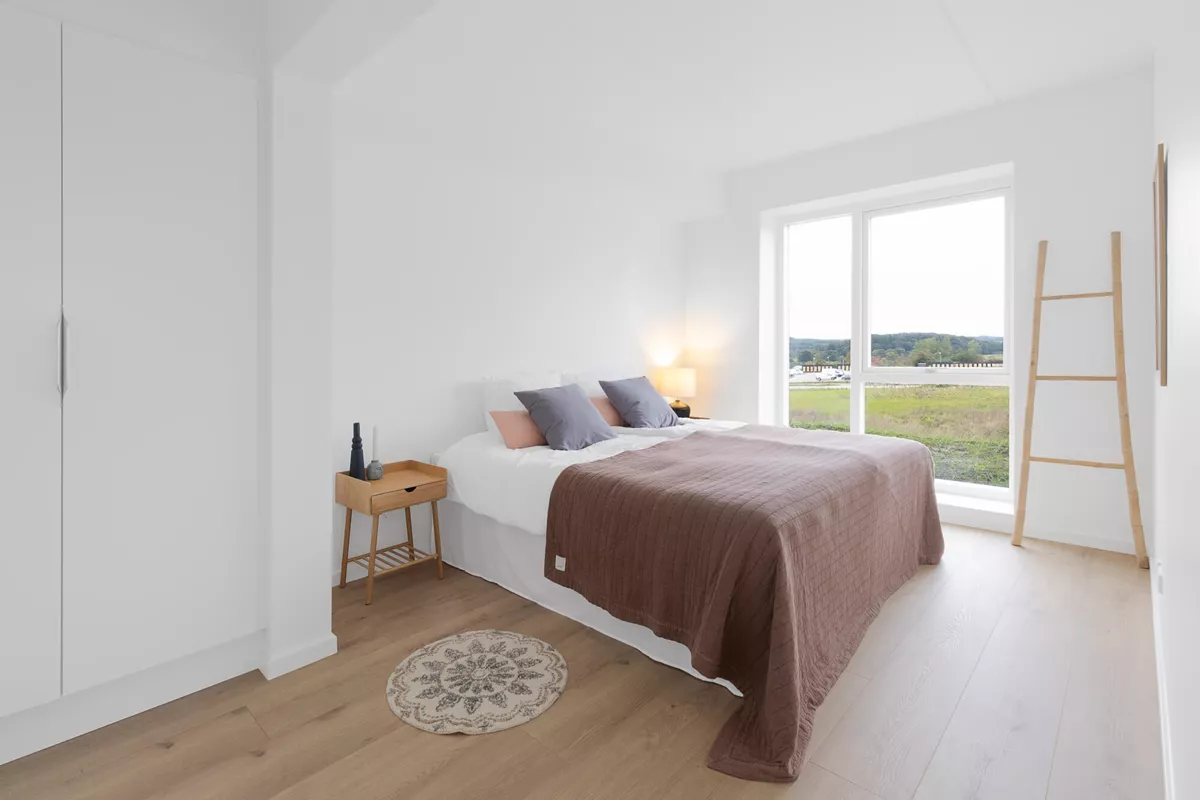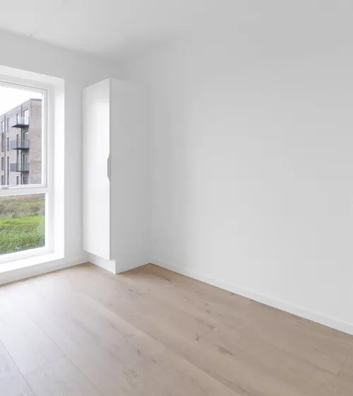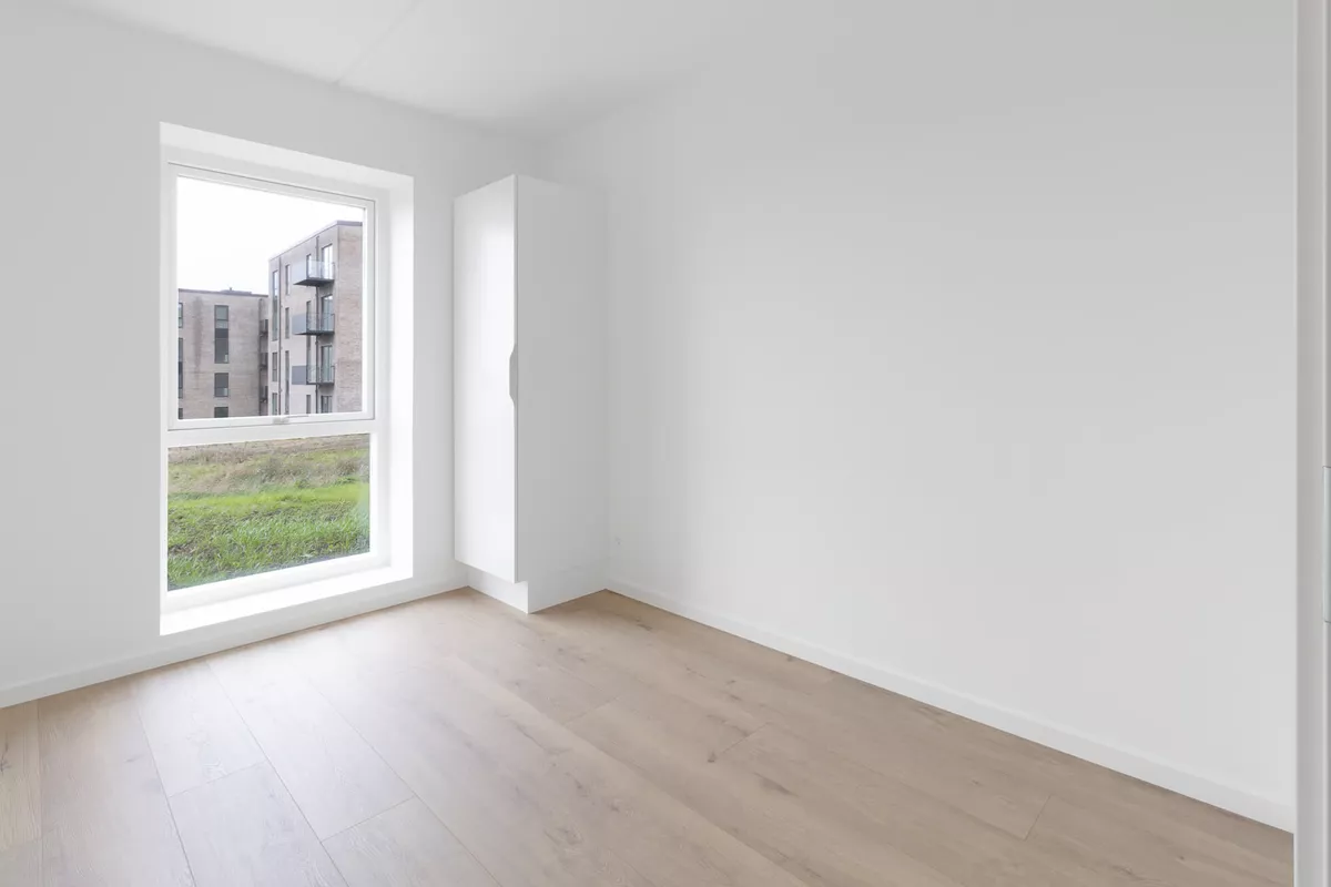 Lejligheden har tre gode værelser, som er placeret side om side i boligens ene ende. Det store soveværelse har to faste garderobeskabe, mens det to andre værelser har et enkelt garderobeskab hver.