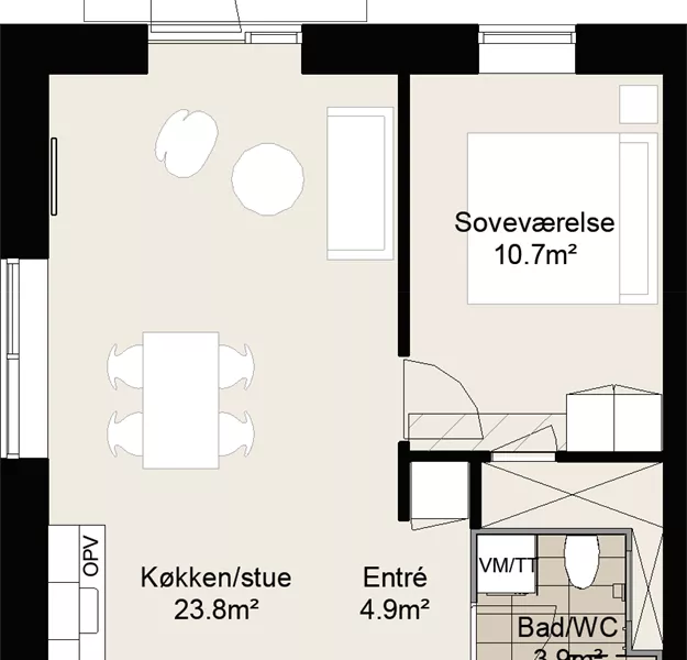 Fra stuen er der direkte udgang til egen altan/terrasse.