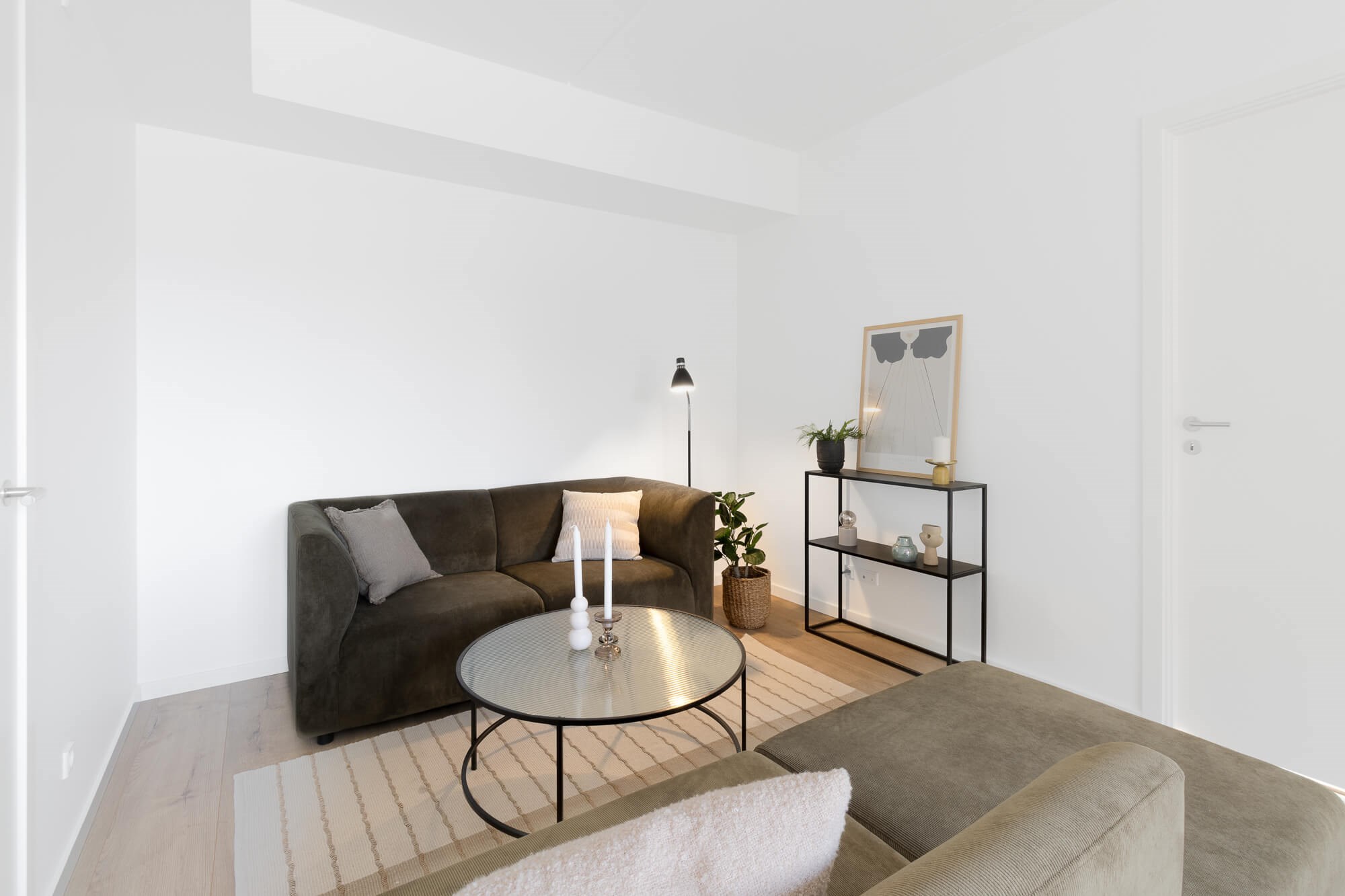 Lejligheden byder velkommen gennem en entré med et enkelt garderobeskab. Entréen har god plads til opbevaringsløsninger til både overtøj og fodtøj.