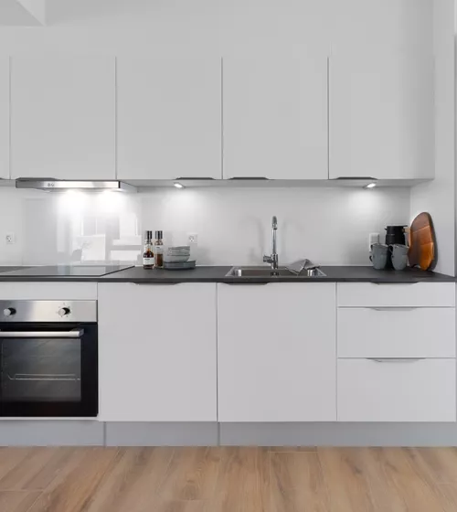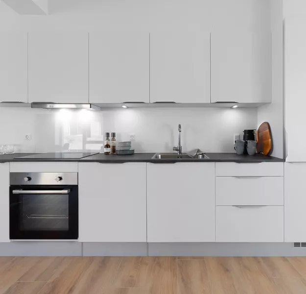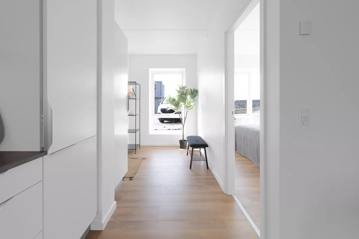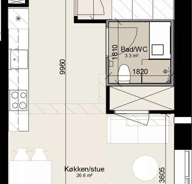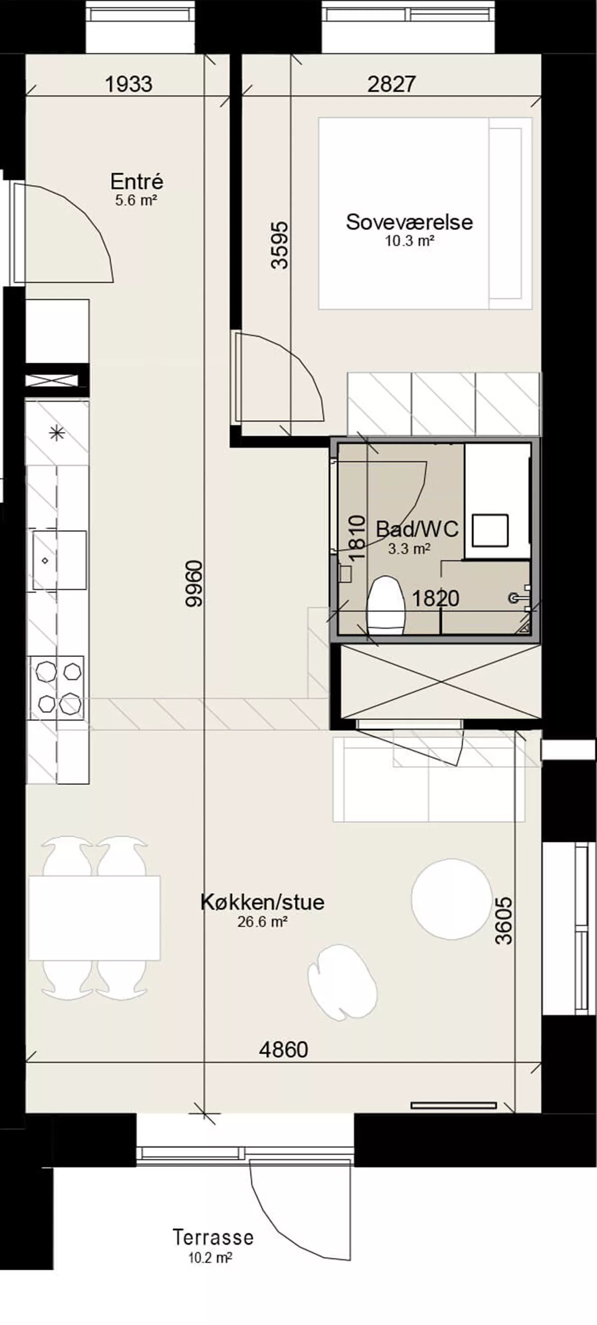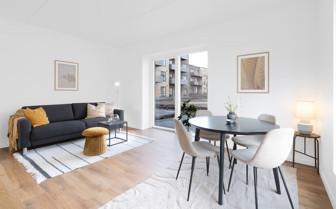 Træd ind i denne lyse og indbydende toværelses lejlighed, hvor et moderne køkken smelter sammen med stuen i en åben og harmonisk forbindelse. Køkkenet er udført med stilrene elementer og inkluderer alt i moderne hårde hvidevarer. Stuen er rummelig og lader dig skabe et behageligt sofaområde.