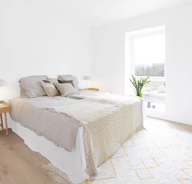 Boligerne er opført i lyse materialer og har flotte laminatgulve i egetræslook samt lyse klinker på badeværelset. Der er gulvvarme i alle rum samt et luftrensende ventilationsanlæg, der sikrer et optimalt indeklima.
