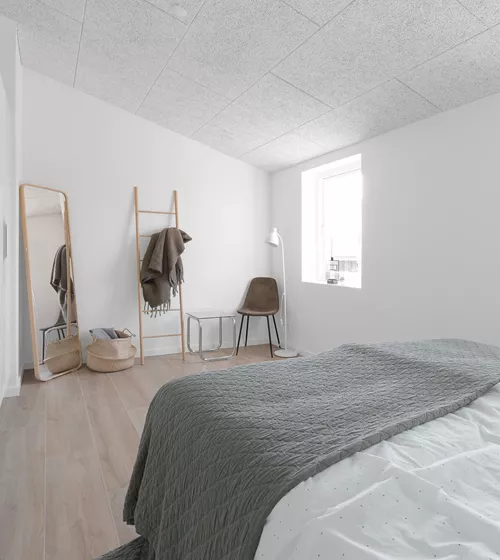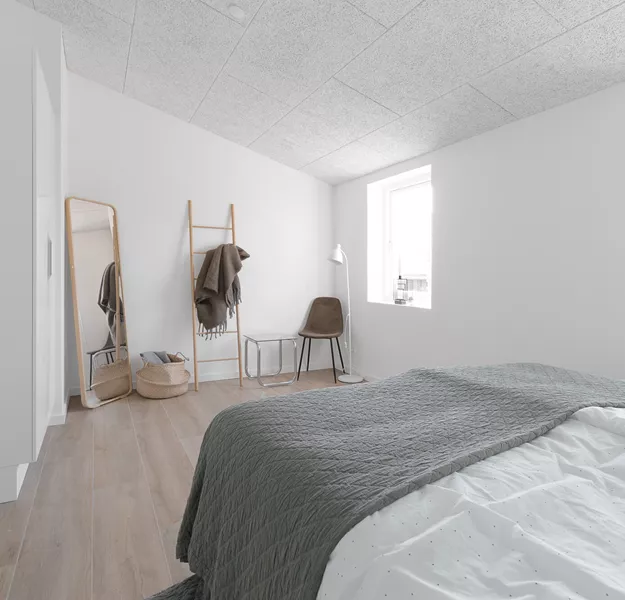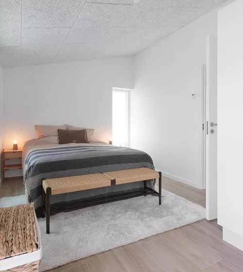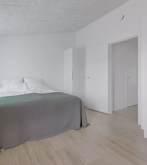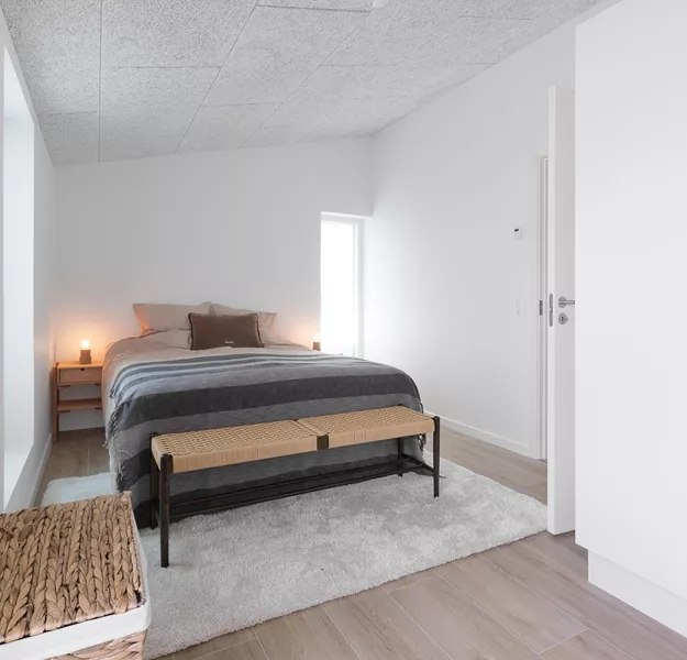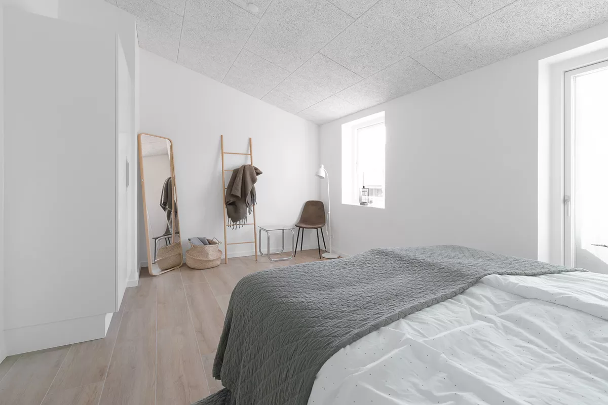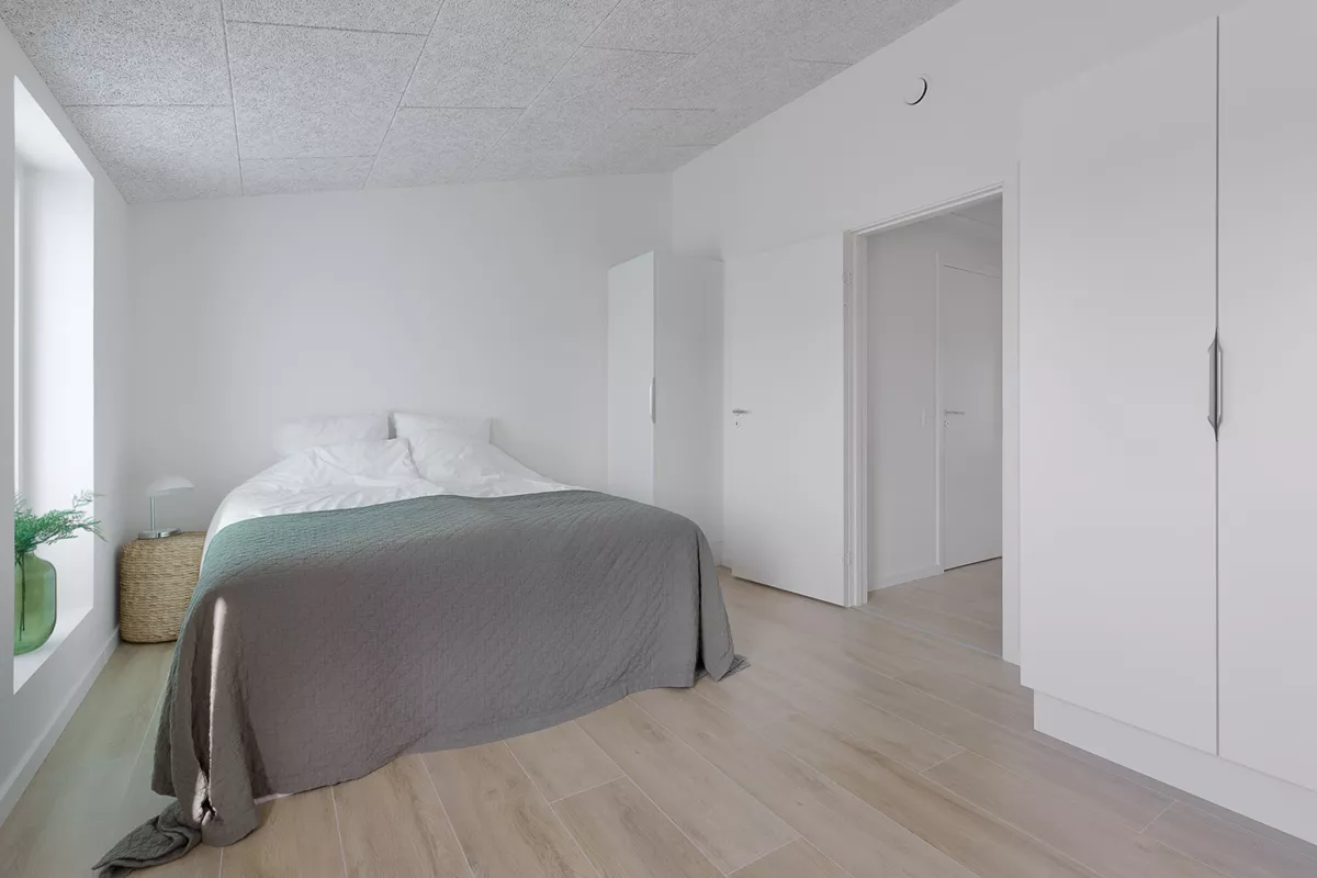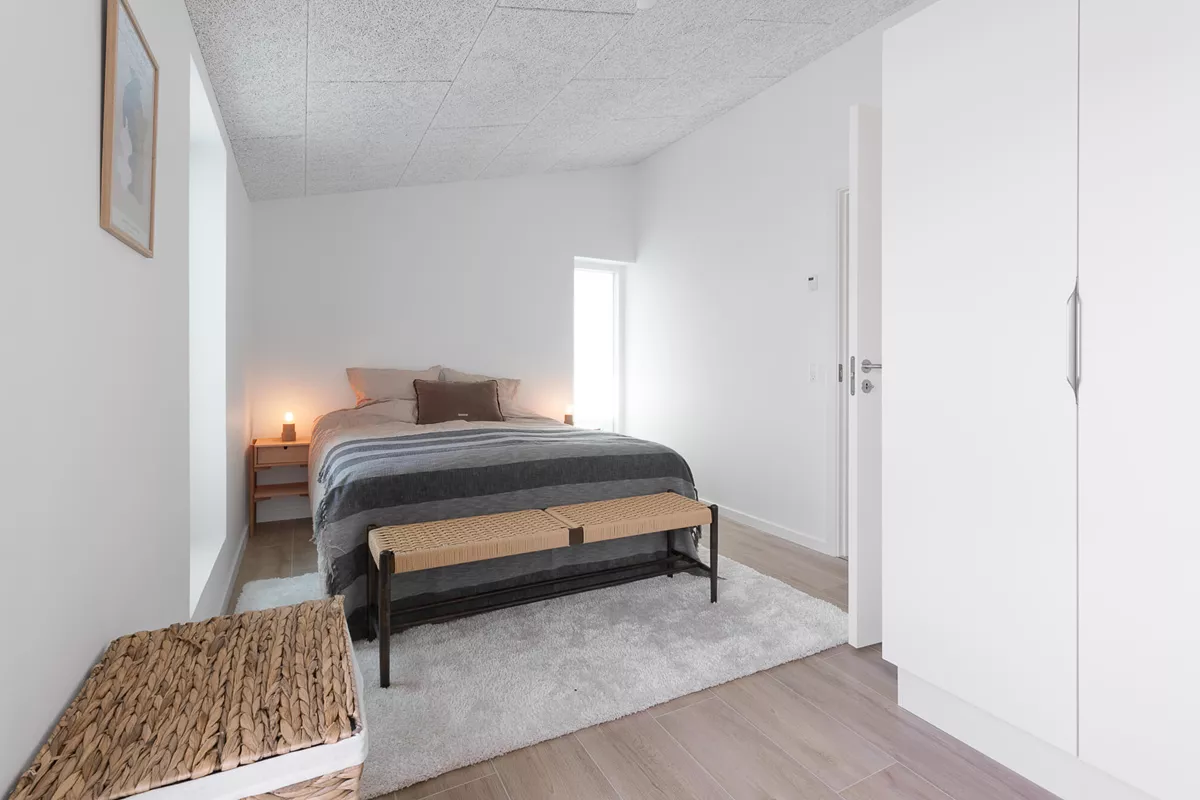 Boligen har et stort soveværelse og et stort ekstra værelse. Begge værelser har tre fastmonterede skabe og masser af plads til senge, skriveborde m.v.