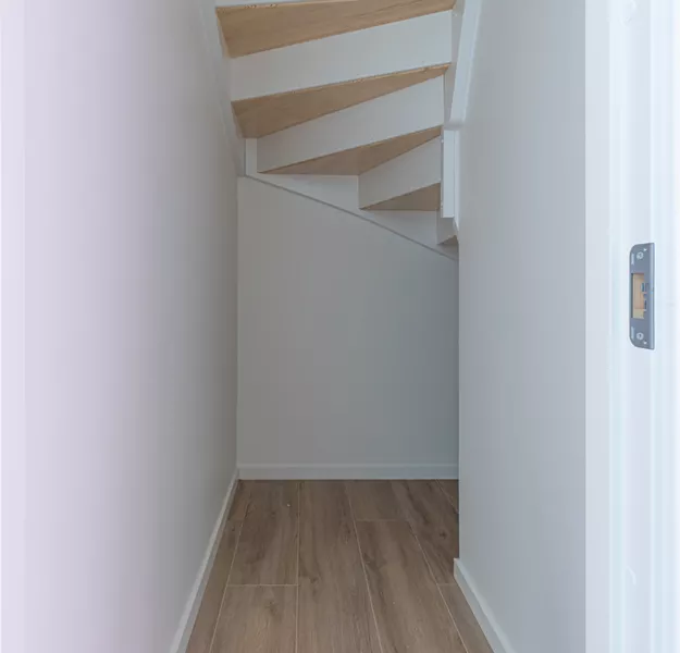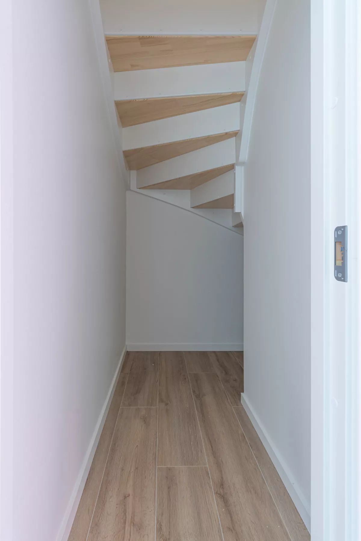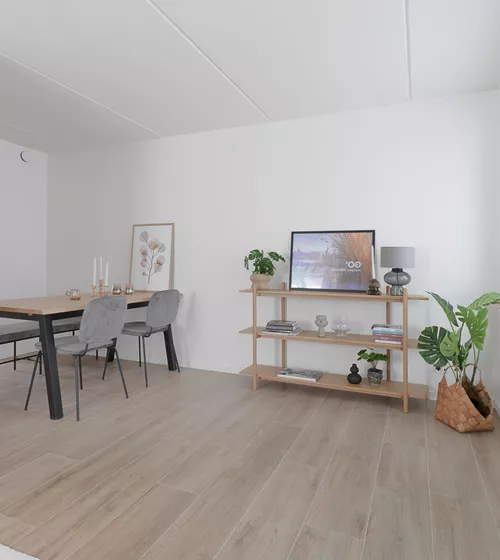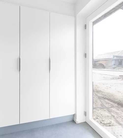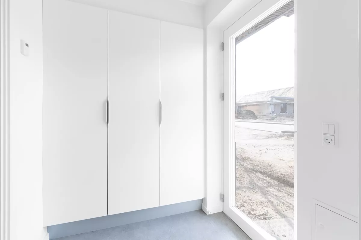 Når du træder ind ad hoveddøren, mødes du af boligens entre. Her er der teknikrum. Der er god plads til at du selv kan hænge en knagerække op og stille en skohylde.