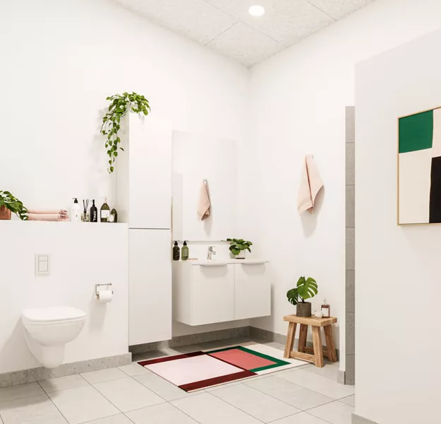 I entréen finder du opbevaringsskabe til jakker og sko. Det er også her din vaskemaskine og tørretumbler er placeret. Det er samtidig muligt at tilføje en skohylde og knagerække.