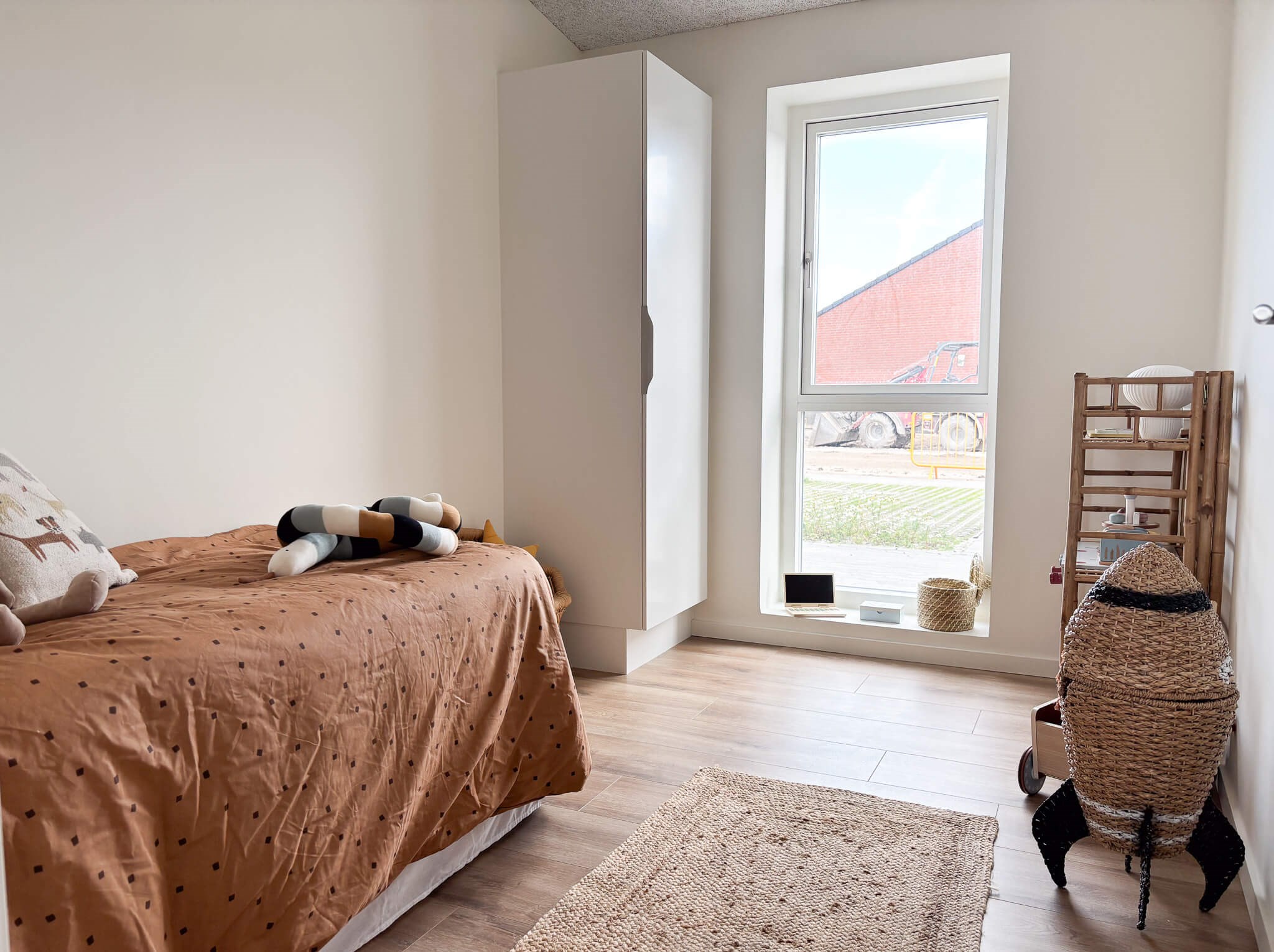 Boligen har to værelser og et soveværelse. Soveværelset er udstyret med tre fastmonterede højskabe og har udsigt ud til terrassen. De to ekstra værelser ligger i modsatte ende af rækkehuset og kan bruges som børneværelse, hobbyrum eller andet.