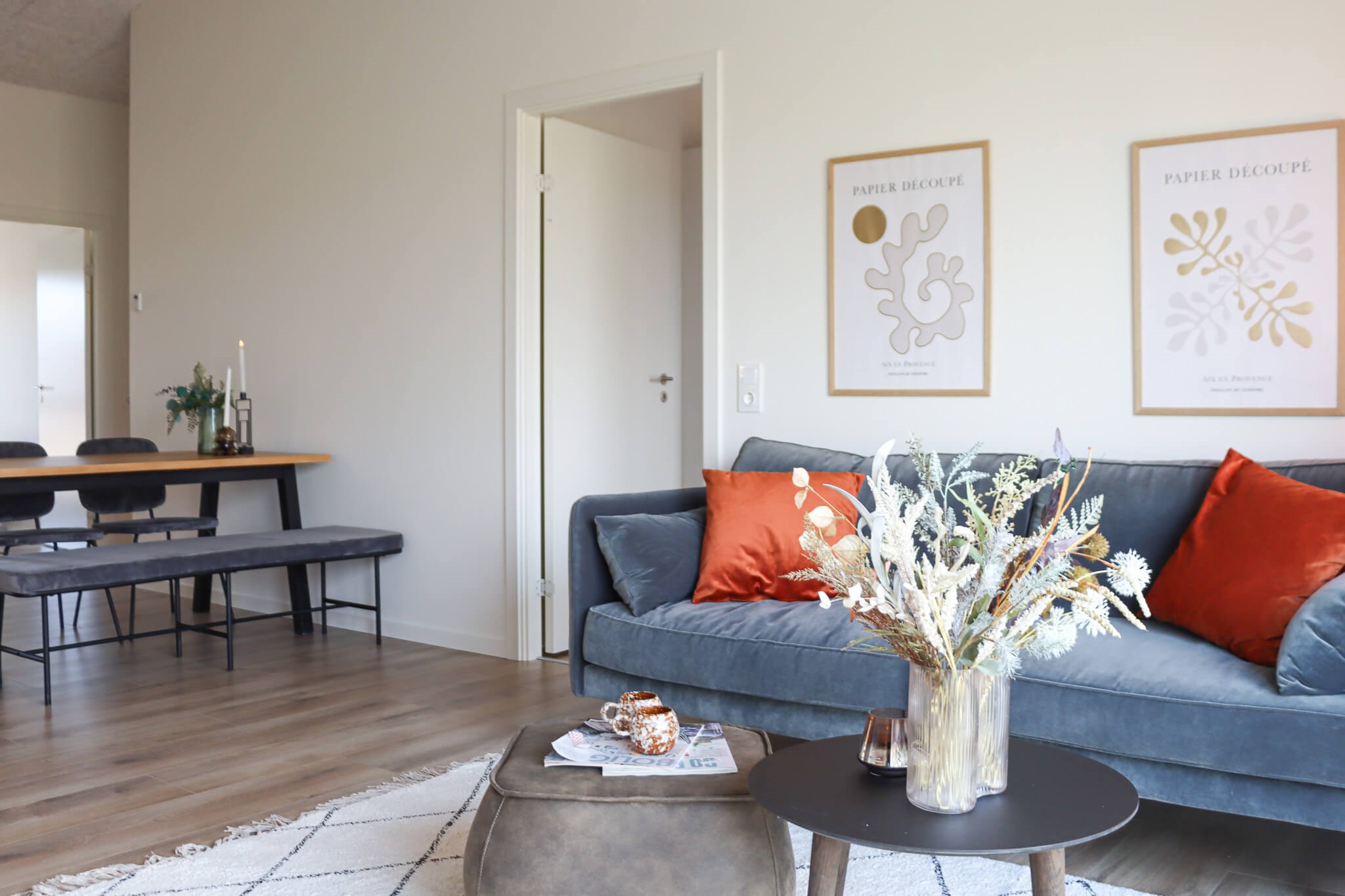 Her har du et skønt fireværelses rækkehus med et hyggeligt køkken-alrum, hvor familien kan samles. Køkkenet er placeret langs den ene væg, hvormed pladsen optimeres. I alrummet er der god plads til et spisebord og sofaområde til hele familien.