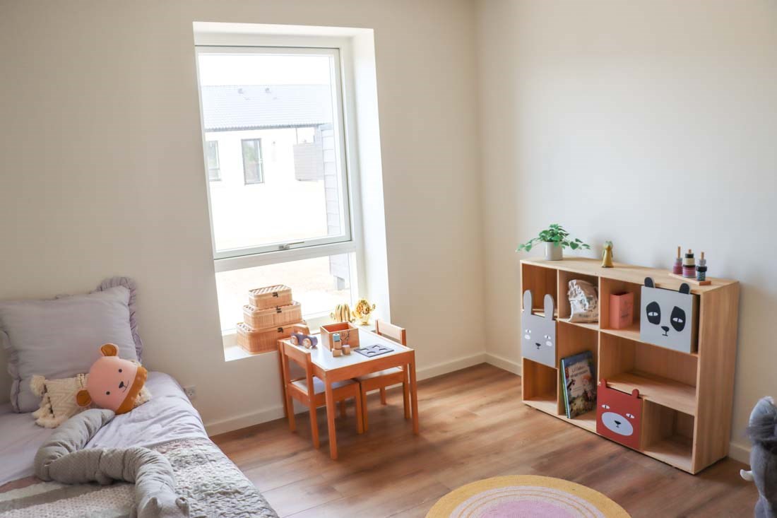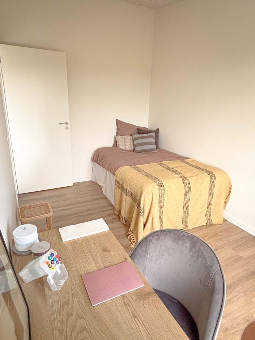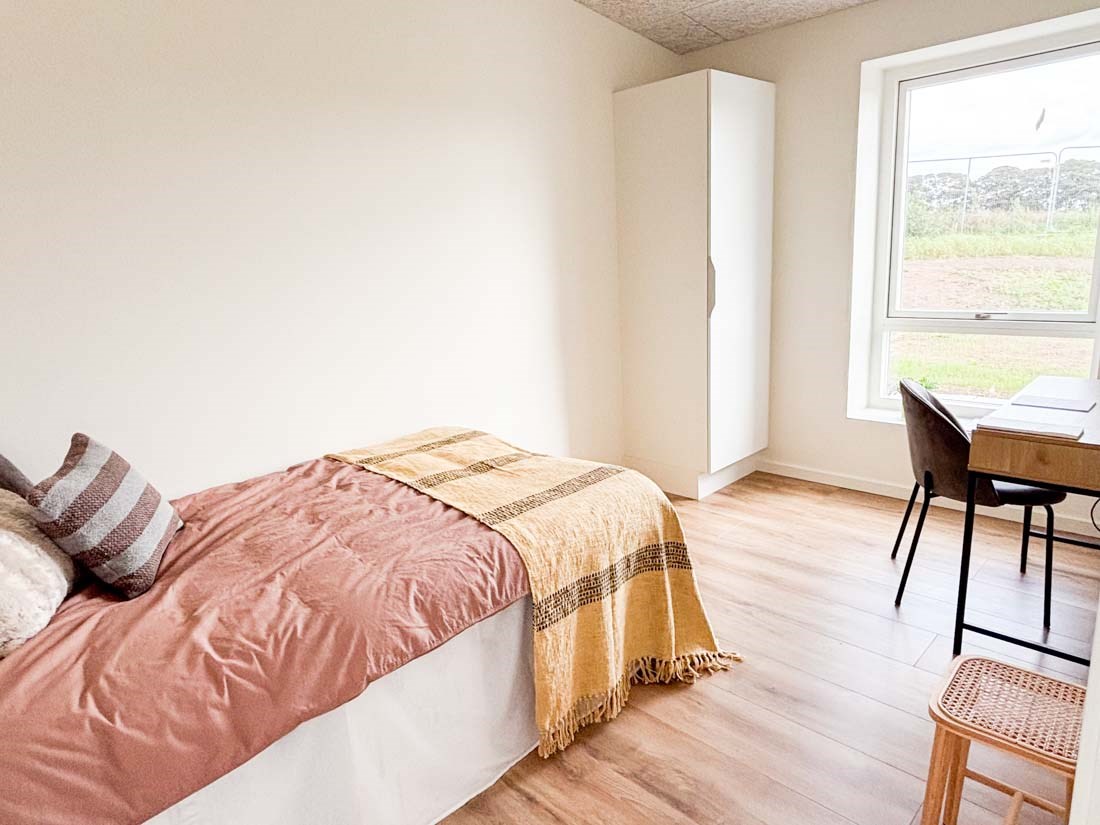Boligen rummer ét soveværelse og tre ekstra værelser, hvilket giver fleksible indretningsmuligheder. Soveværelset er udstyret med faste garderobeskabe og har plads til en dobbeltseng samt natborde. De øvrige værelser er velegnede som børneværelser, hjemmekontor eller gæsteværelser, alt efter dine behov.