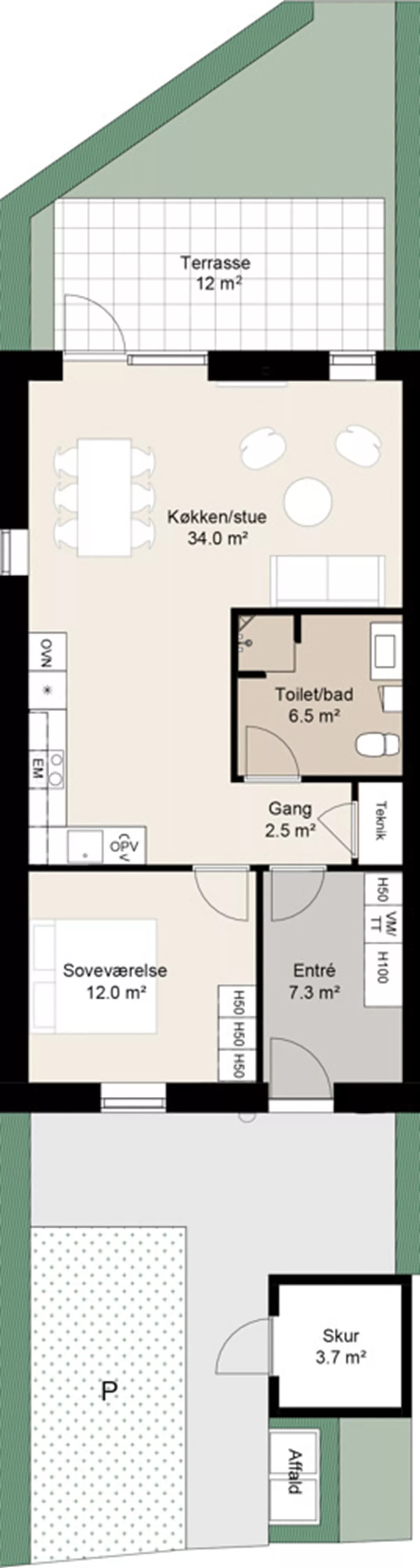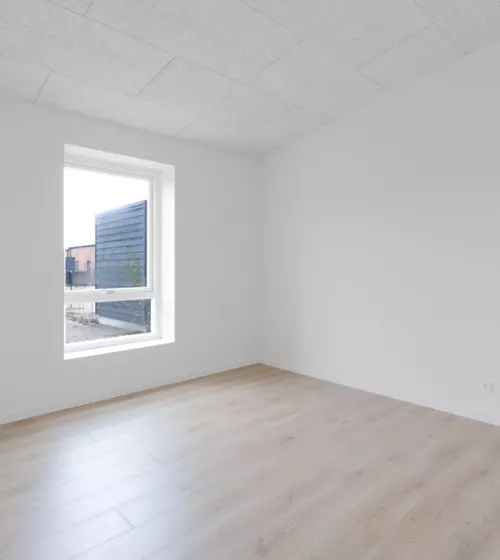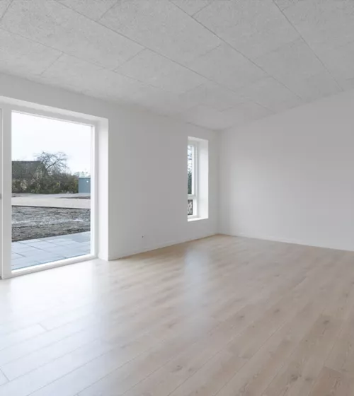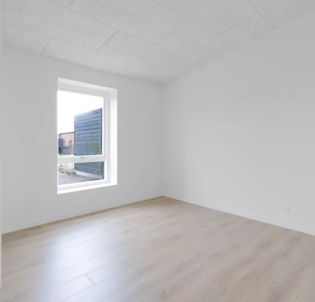 Både foran og bag boligen er der gjort plads til hyggelige uderum. Foran boligen er der en stor flisebelagt terrasse med god plads til møbler og planter. Her finder du også boligens private opbevaringsskur og egen parkeringsplads. Fra boligens alrum, er der direkte adgang ud til husets terrasse, hvor der ligeledes er god plads til at nyde sommer- og grillaftenerne. Obs. alle billeder og plantegninger er vejledende.