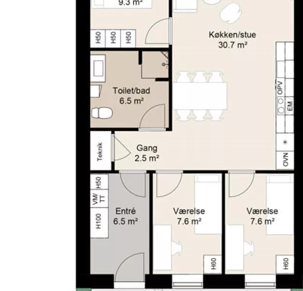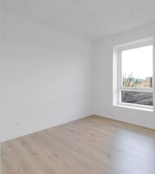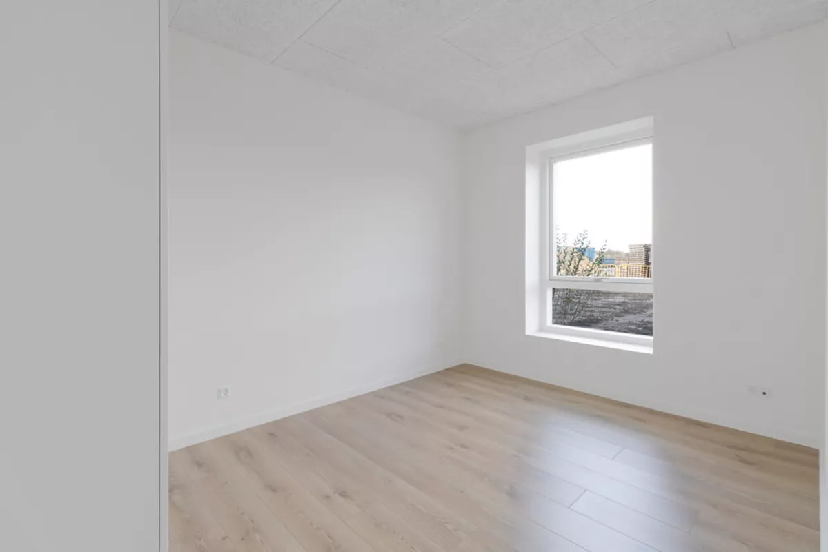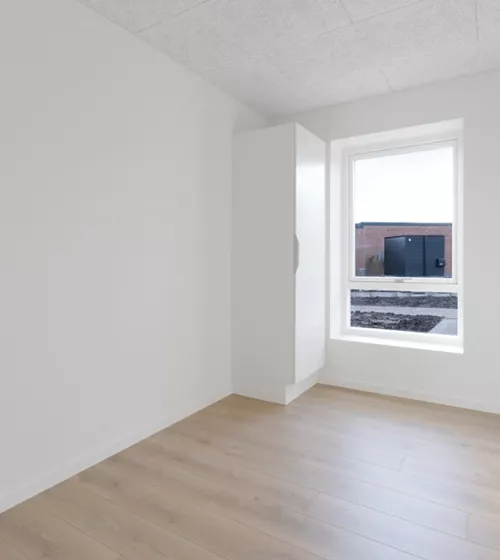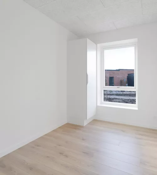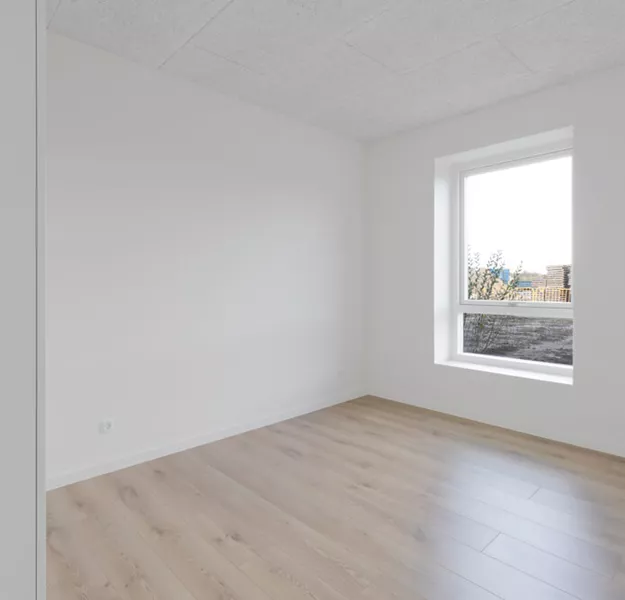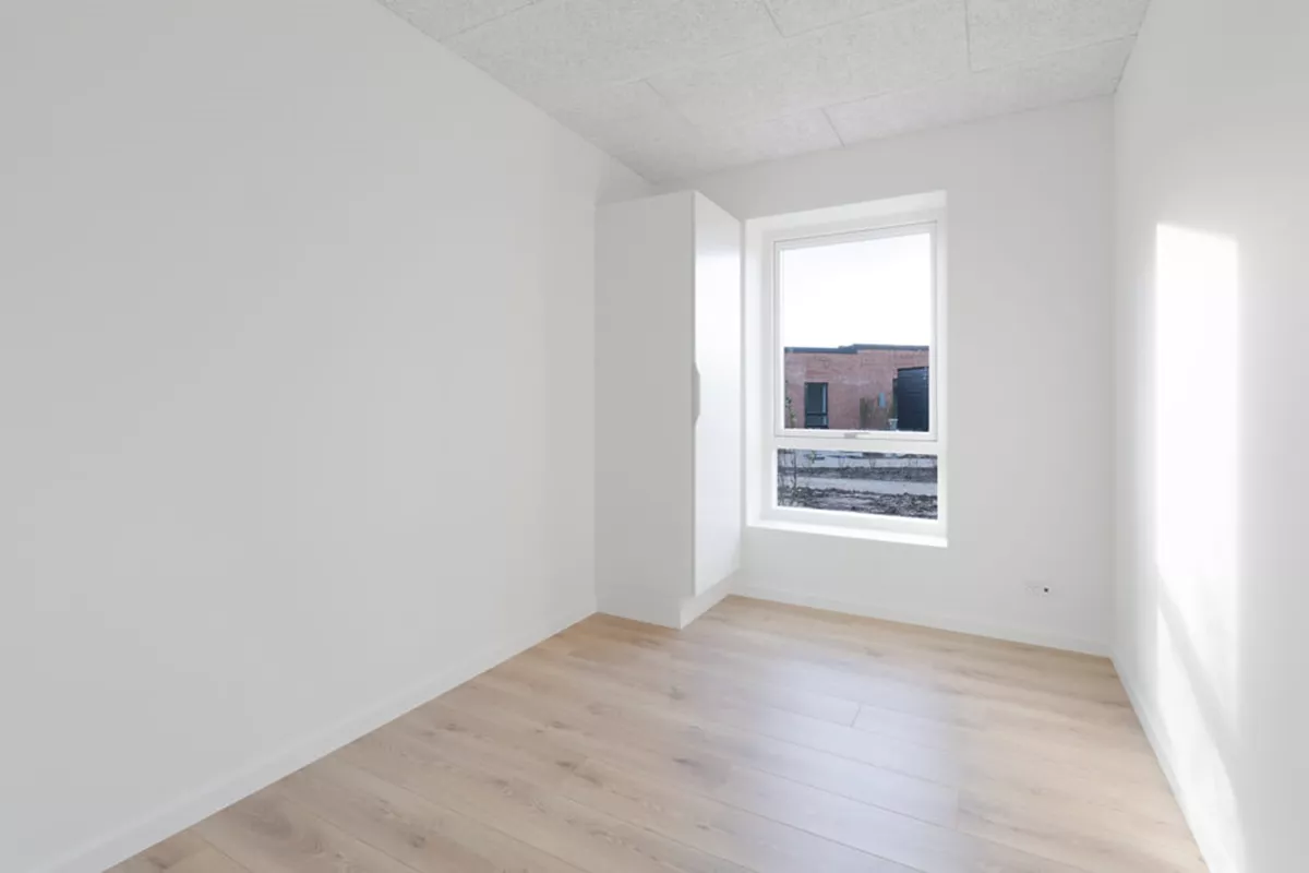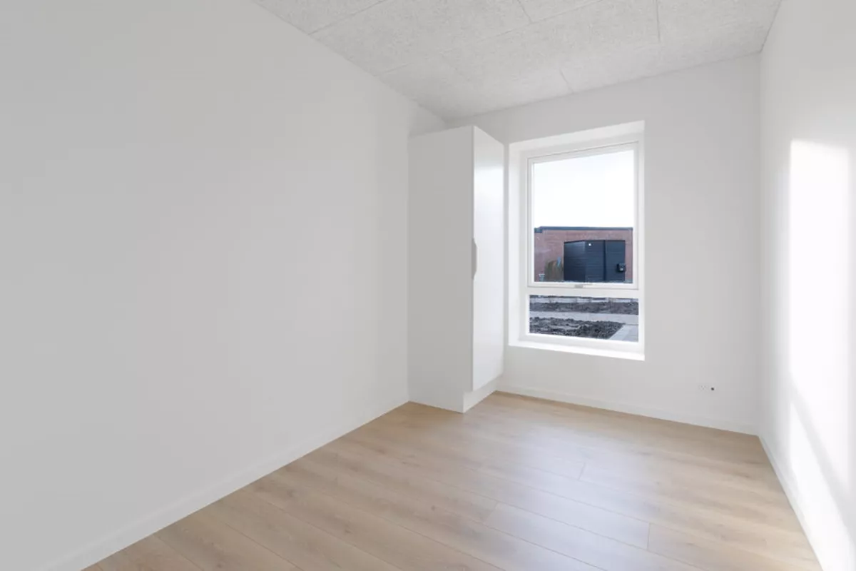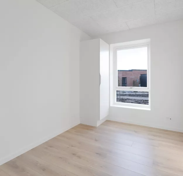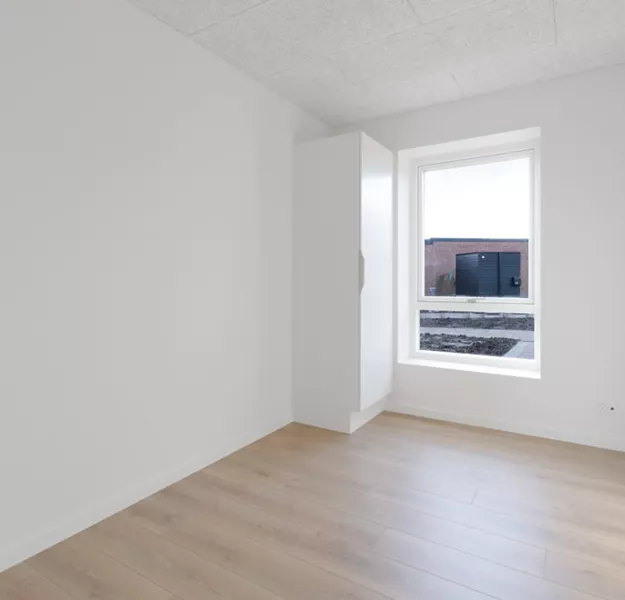 Boligen rummer to værelser og et soveværelse. Soveværelset ligger spredt fra de resterende værelser. Rummet er udstyret med tre fastmonterede højskabe og får et skønt lysindfald fra vinduet der har udsigt ud til den private have. De to ekstra værelser ligger i modsatte ende og indeholder også opbevaringsmuligheder og plads til både seng og skrivebord mm.